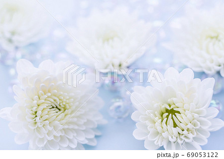 白い菊の花 喪中はがきの写真素材